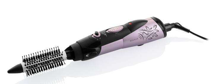 Leistungsaufnahme 1000W, Ionenfunktion, 2 Temperaturstufen, Hitzeisolierte Spitze, Taste Care: Kühlluftstufe zur Fixierung, drehbares Anschlusskabel 1,8m, Stylingdüse, einklappbare Spitzen (ø 30mm), Ondulations-Aufsatz (ø19mm), Rundbürste (ø19mm), Rundbürste mit elastischen Spitzen (ø33mm), Flachbürste, Reiseetui